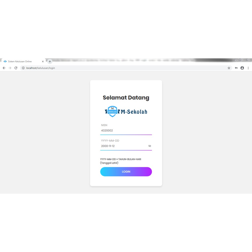 Password untuk adminnya huruf kecil semua)download source code Dengan aplikasi ini, siswa tidak perlu lagi datang ke sekolah untuk mengetahui hasil kelulusannya, cukup dengan akses internet (via komputer atau gadget). Download juga source code website pengumuman kelulusan menggunakan php dan mysql disini. Source code aplikasi pengumuman kelulusan berbasis web yang dibangun menggunakan php dan mysql. Adapun kelebihan dalam aplikasi ini para admin bisa input data hanya dengan data di excel setelah itu import file exe ke aplikasi ini, setelah itu siswa bisa mengecek pengumuman informasi.